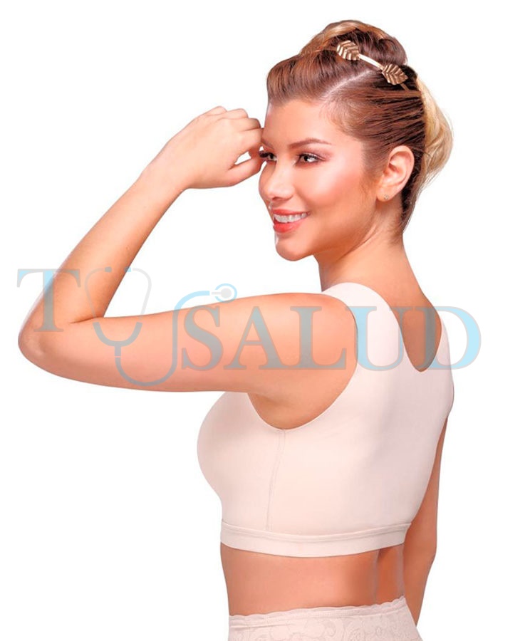 - Parte posterior del brasier con refuerzo en la misma tela que cubre la espalda y no deja ver los gorditos que se forman en los costados.